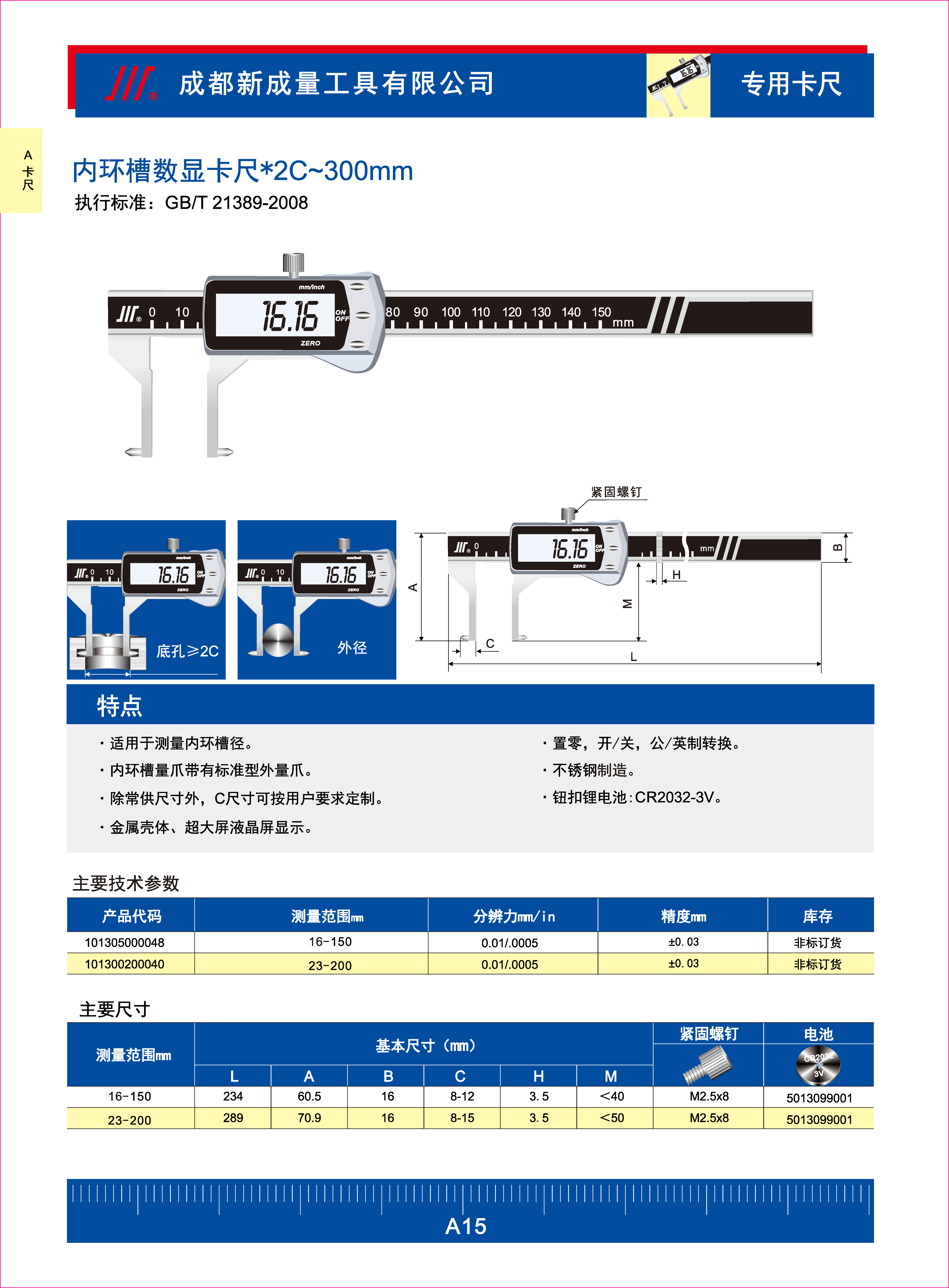 成量内环槽数显卡尺 执行标准: GB/T 21389-2008