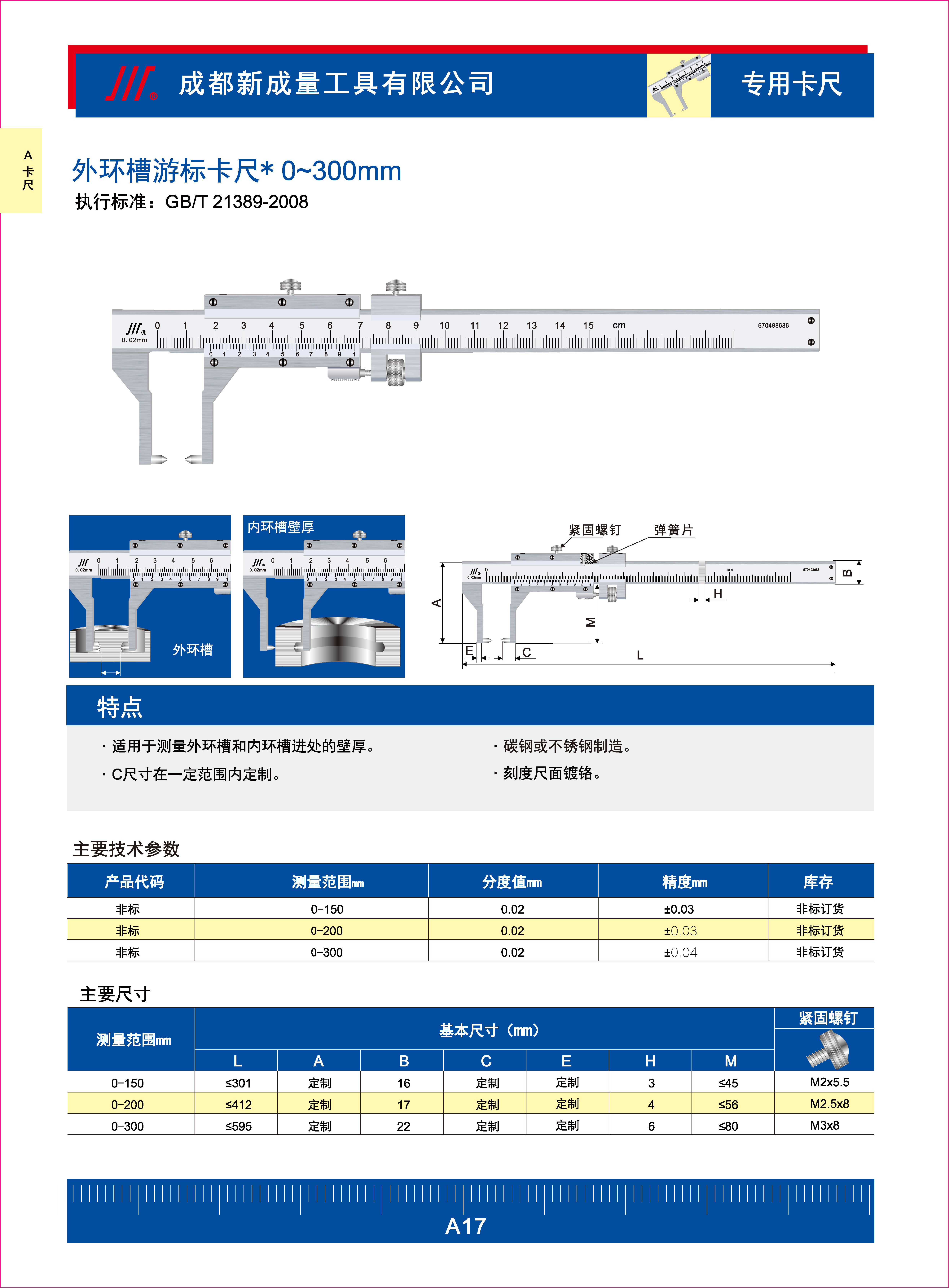 成量外环槽游标卡尺 执行标准: GB/T 21389-2008-卡尺-成量-成都成量工具有限公司,成量,成量工具,卡尺,百分表,千分尺,量具,刃具