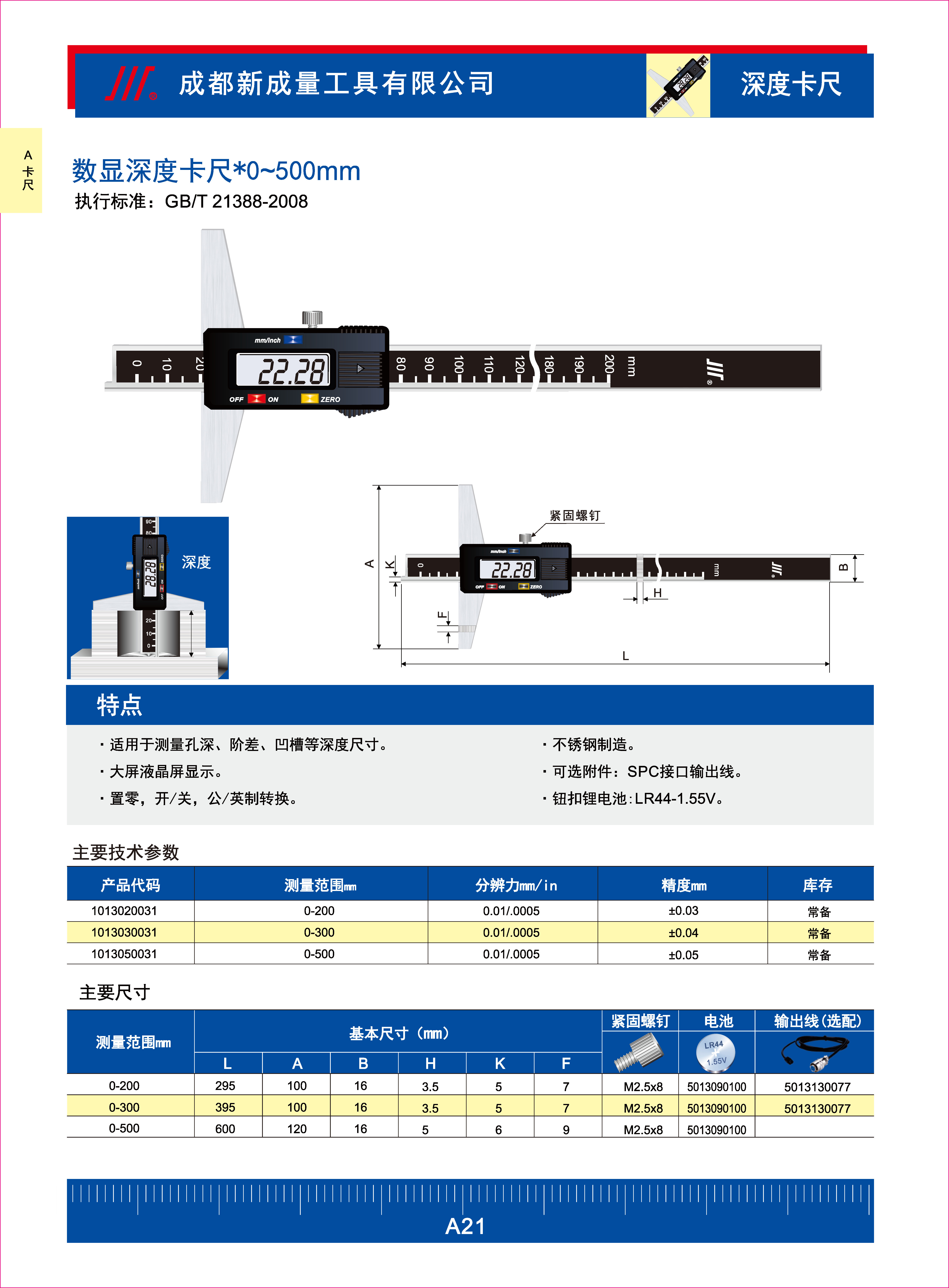 成量数显深度卡尺 执行标准: GB/T 21388-2008-卡尺-成量-成都成量工具有限公司,成量,成量工具,卡尺,百分表,千分尺,量具,刃具