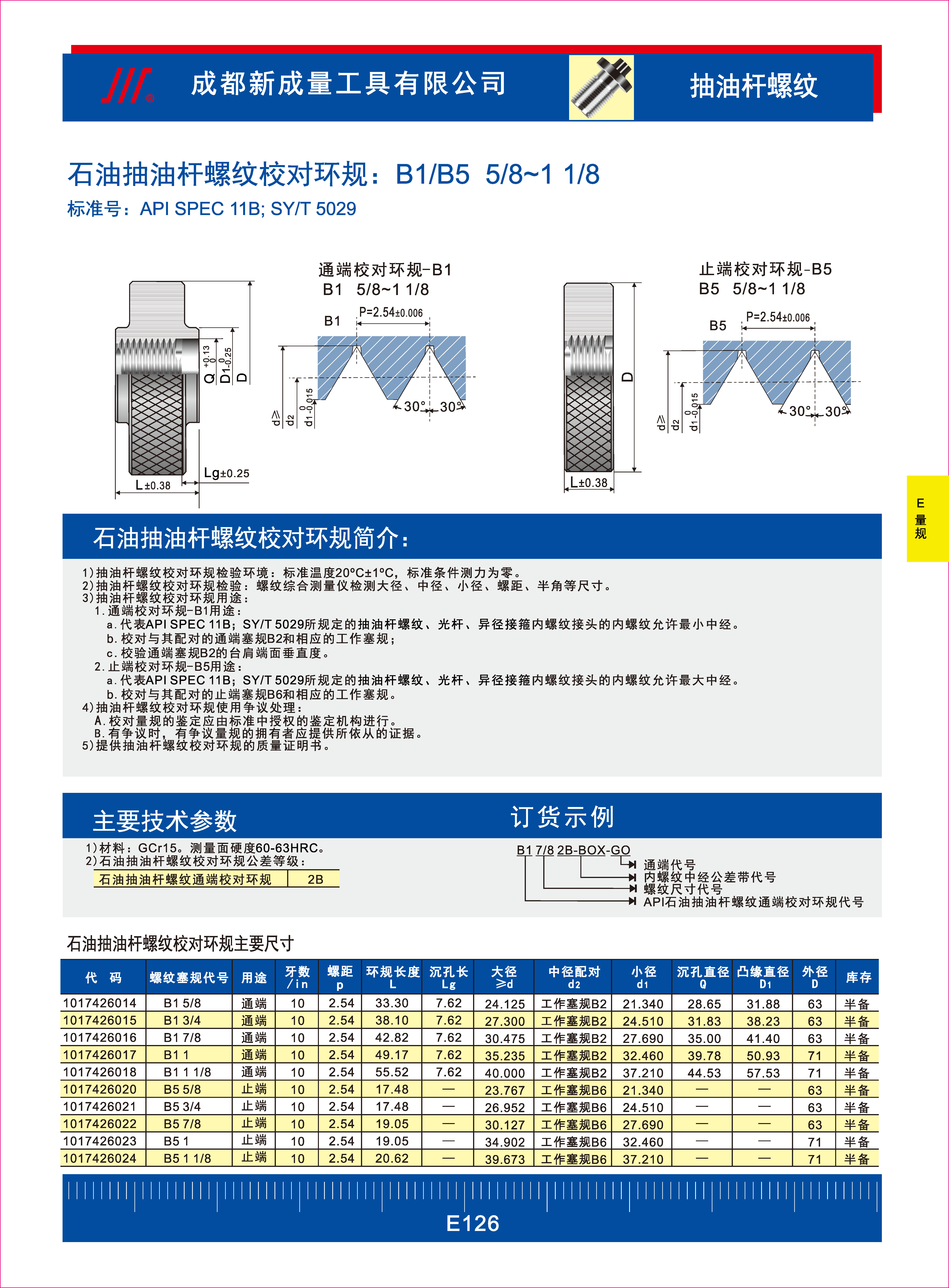 石油抽油杆螺纹校对环规执行标准: API SPEC 11B;SY/T 5029