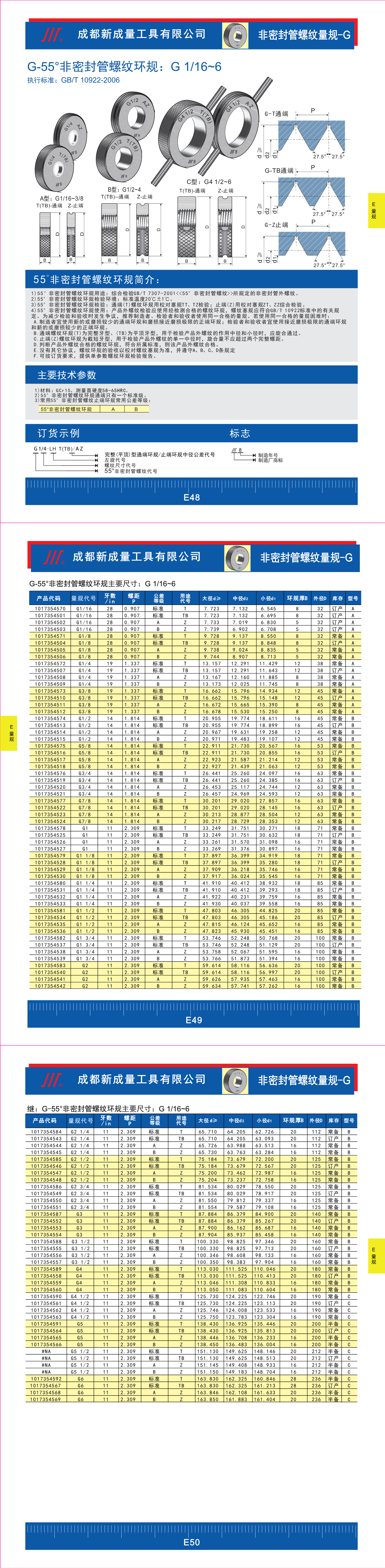 G-55°非密封管螺纹环规执行标准: GB/T 10922-2006