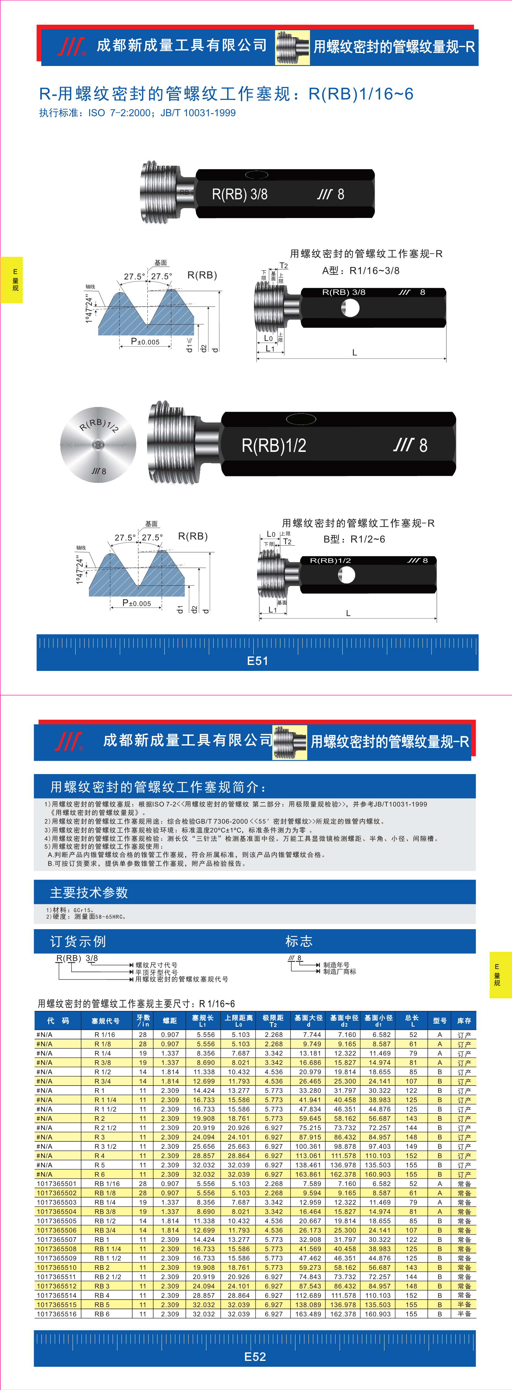 R-55°锥管螺纹塞规执行标准: ISO 7-2:2000;JB/T 10031