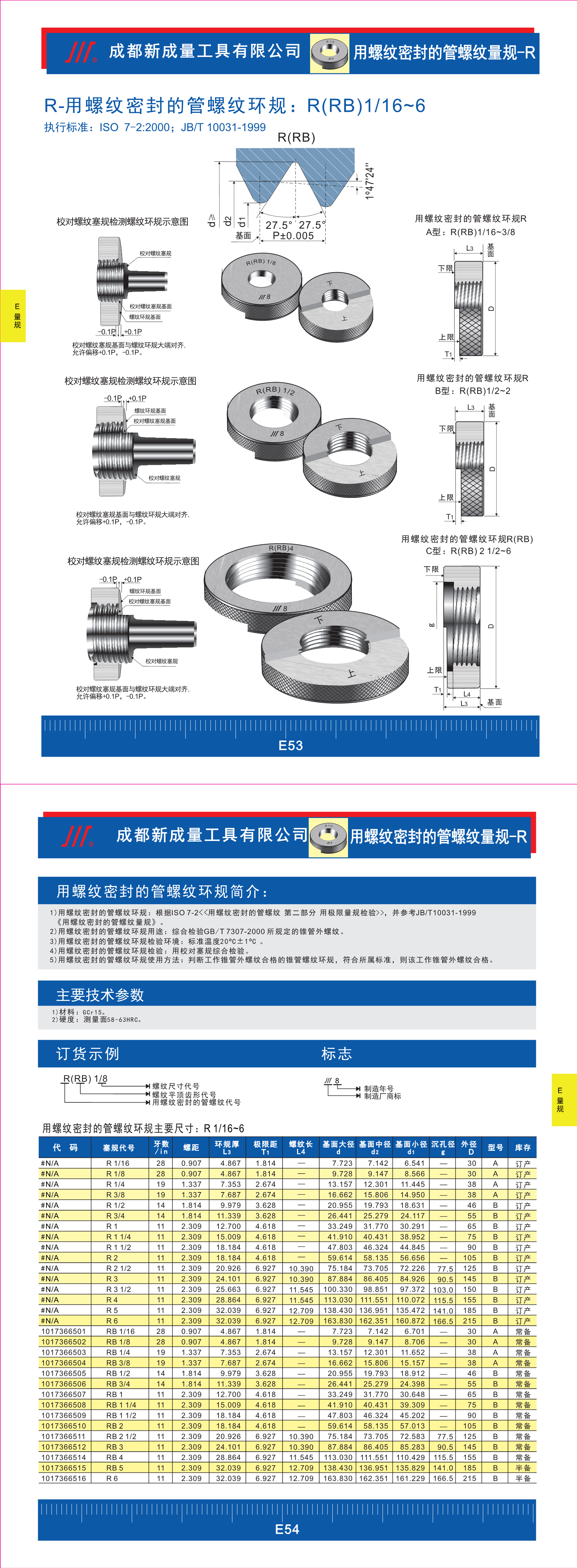 R-55°圆锥管螺纹环规执行标准: ISO 7-2:2000;JB/T 10031|