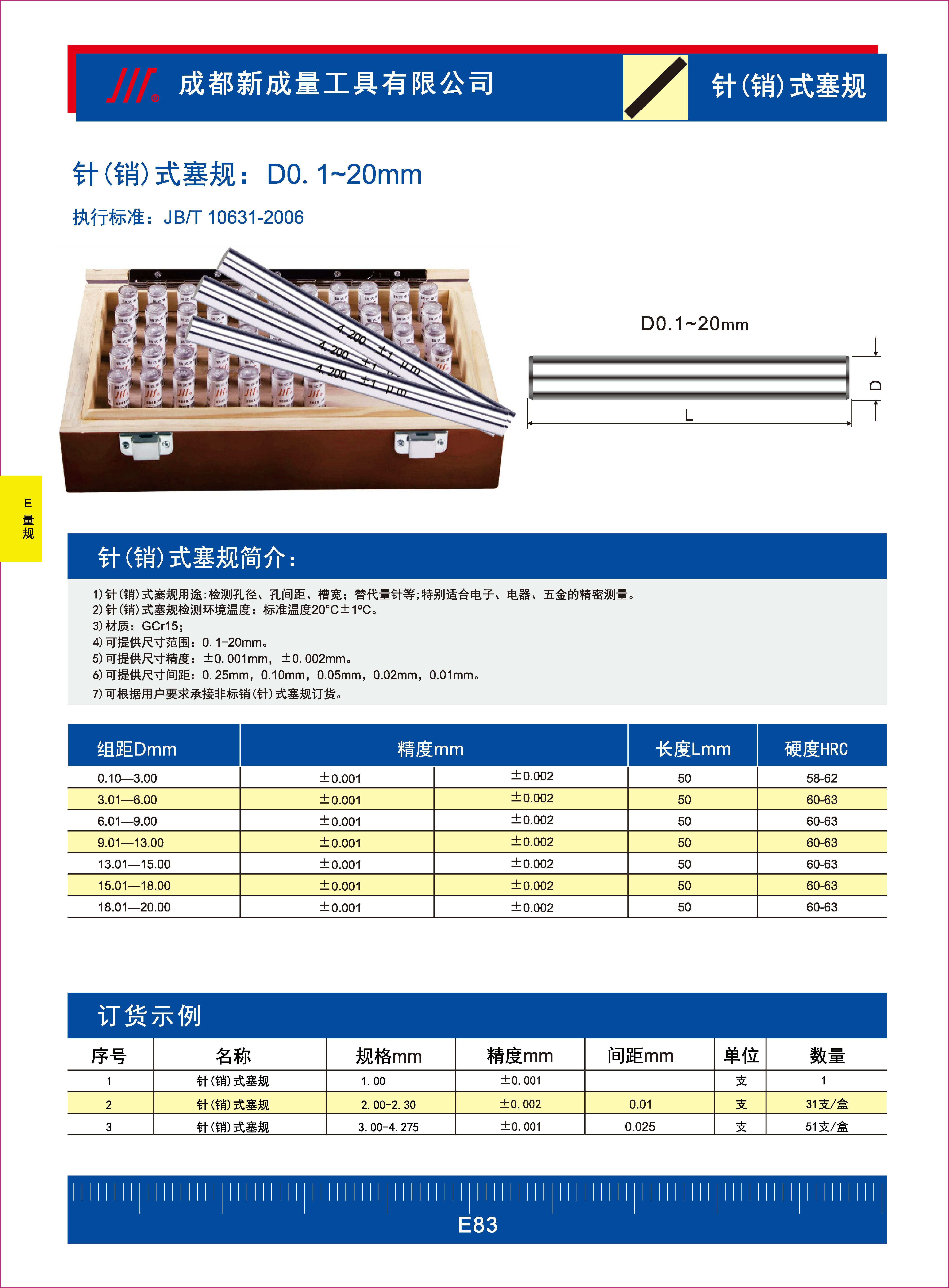 0.001-针(销)式塞规执行标准: JB/T 10631-2006