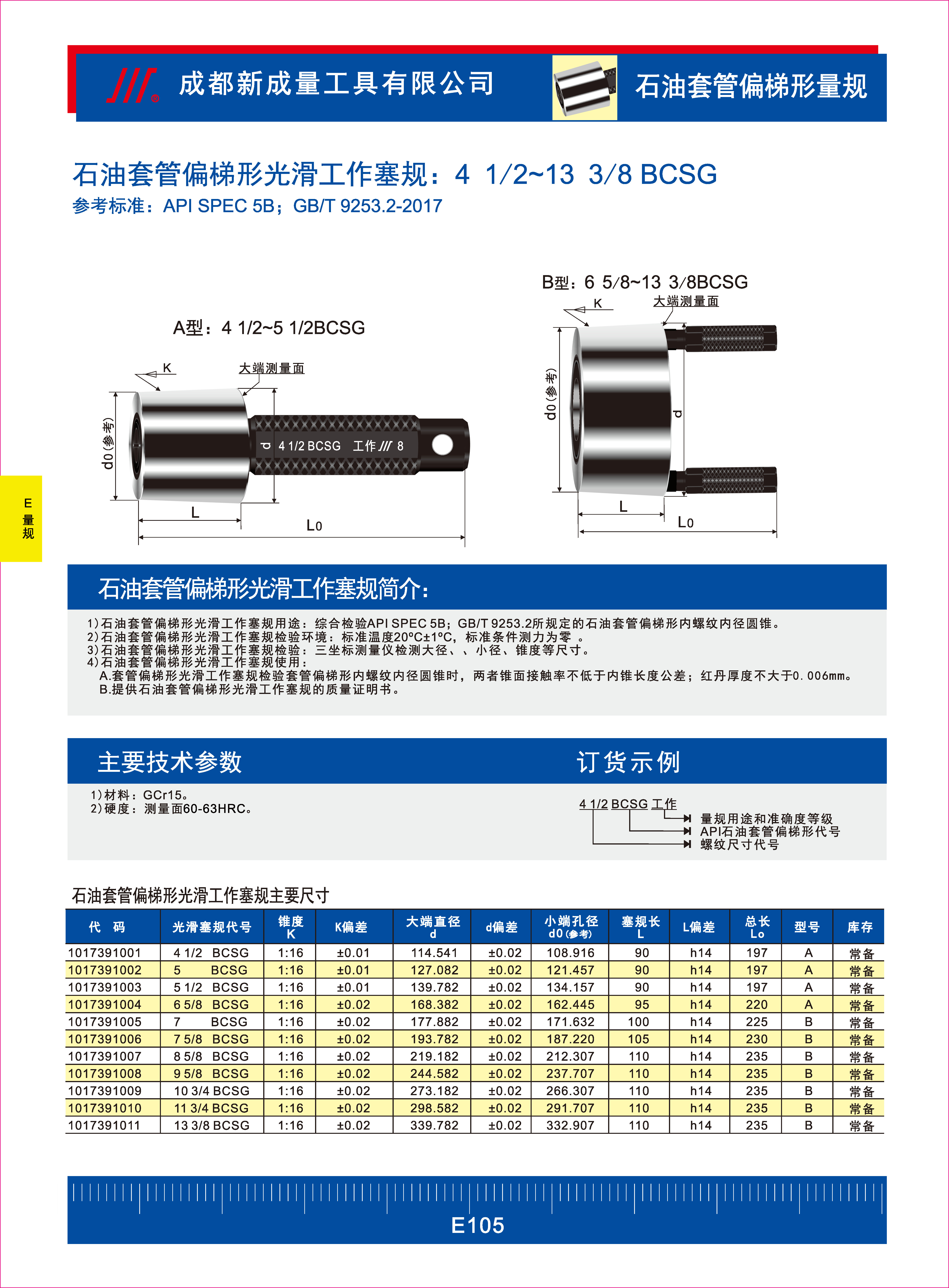 | 规格代码 | 1017391001 | 塞规代号 | 4 1/2 BCSG | 锥度 | 1:16 |
